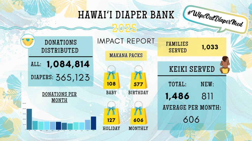 Hawaiʻi Diaper Bank partners with the following community-based organizations to distribute diapers, wipes, and other basic essentials to the low-income families they serve. If you are interested in becoming a partner agency, please contact us. If you live on Hawaiʻi Island and you need help, please contact us or any one of our amazing partners.